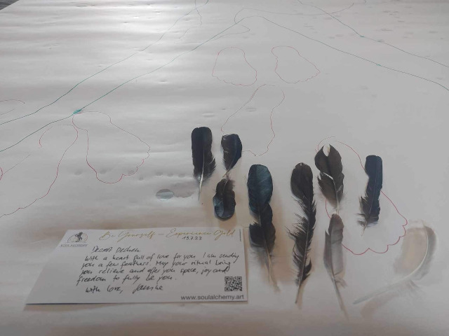 Also führte ich einige Rituale durch, um sie der Natur zurückzugeben, und schickte den Rest von Hunderten von Federn zurück in die Welt an Menschen auf der ganzen Welt, die – selbst – einige individuelle Rituale einrichteten, um die Vögel, die Natur und sich selbst zu feiern und zu ehern, unsere inhärente Freiheit und die Unterstützung der wahren Natur zu ehren.
